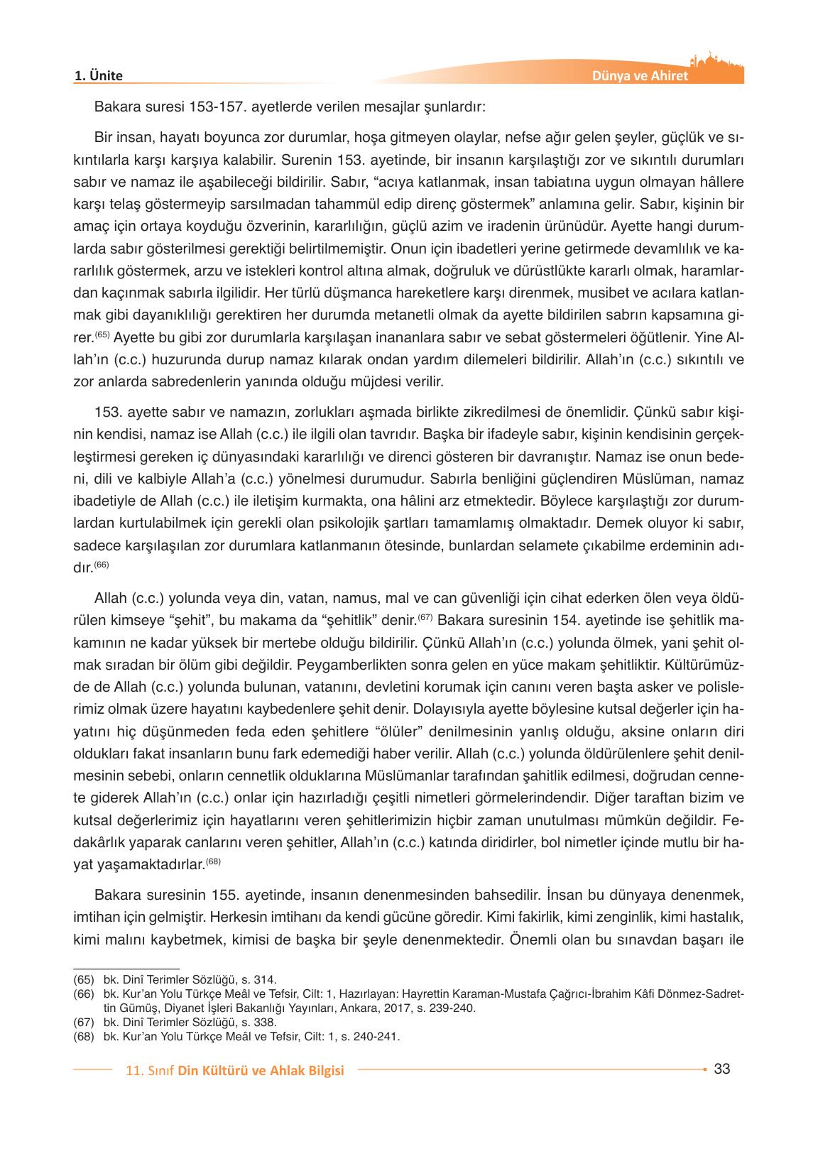 11. Sınıf Din Kültürü ve Ahlak Bilgisi Ders Kitabı Gezegen Yayınları Sayfa 33 Cevapları