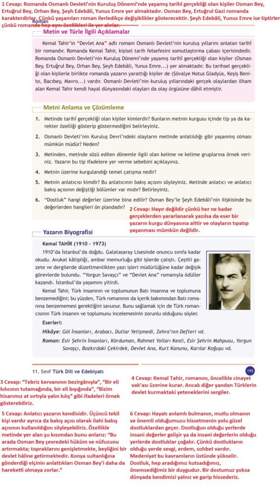 11. sınıf türk dili ve edebiyatı ders kitabı gezegen yayıncılık sayfa 195 cevap anahtarı 2022-2023 sayfa olarak çözümlerini yanıtları sizler için aşağıda sunduk. 2025-2026 gezegen yayıncılık türk dili ve edebiyatı ders kitabı cevapları yine sitemizde olacak.
