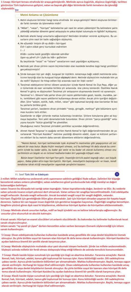 11. Sınıf Edebiyat Gezegen Yayıncılık Sayfa 75 Cevapları / Cevabı