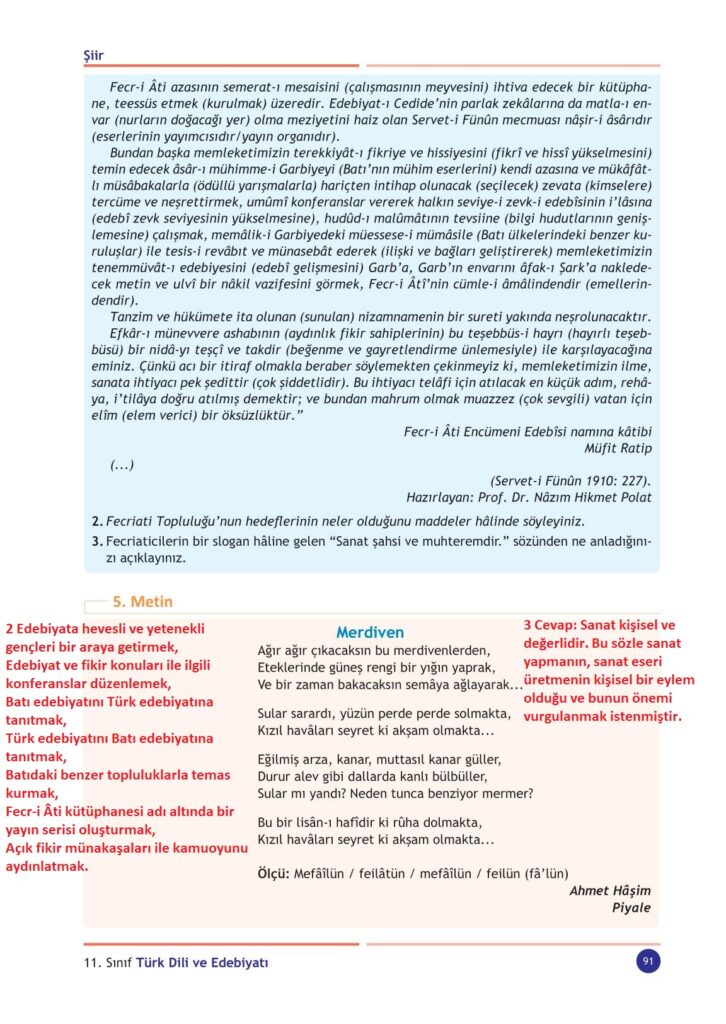 11. Sınıf Edebiyat Gezegen Yayıncılık Sayfa 91 Cevapları / Cevabı