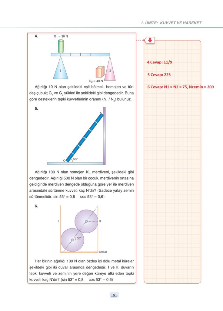 11. Sınıf Fizik Anka Yayınevi Sayfa 185 Cevapları / Cevabı