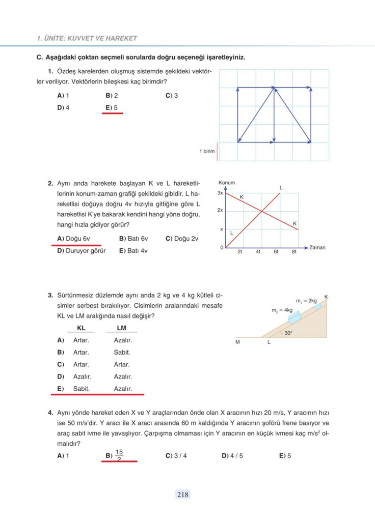 11. Sınıf Fizik Anka Yayınevi Sayfa 218 Cevapları / Cevabı