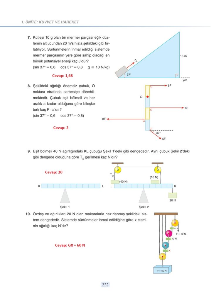 11. Sınıf Fizik Anka Yayınevi Sayfa 222 Cevapları / Cevabı