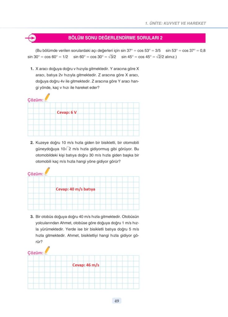 11. Sınıf Fizik Anka Yayınevi Sayfa 49 Cevapları / Cevabı