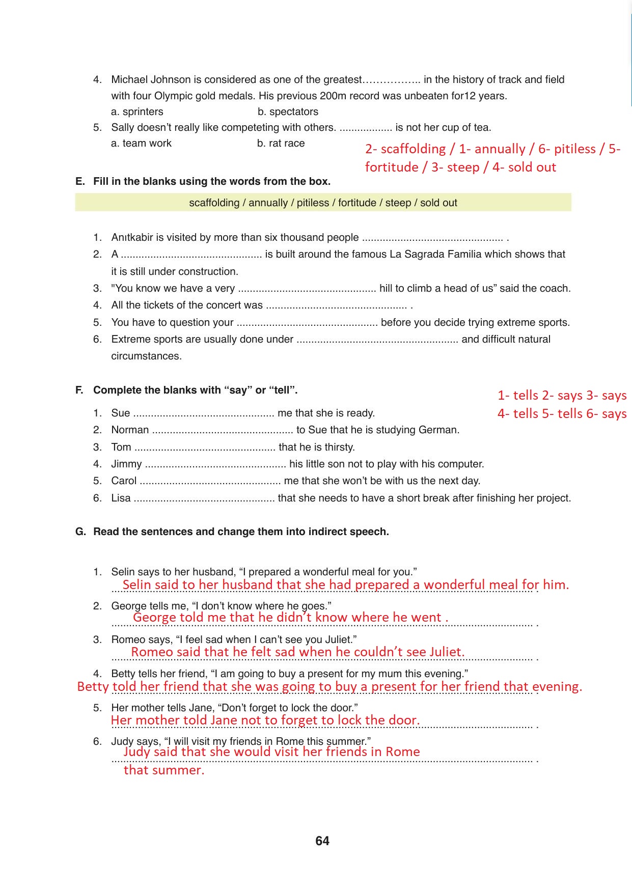 11. Sınıf İngilizce Çalışma Kitabı Meb Yayınları Silver Lining Sayfa 64 Cevapları