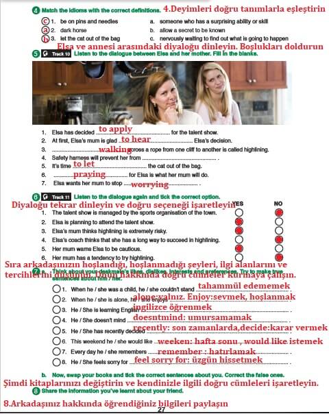 11. Sınıf İngilizce Silver Lining Meb Yayınları Sayfa 27 Cevapları / Cevabı