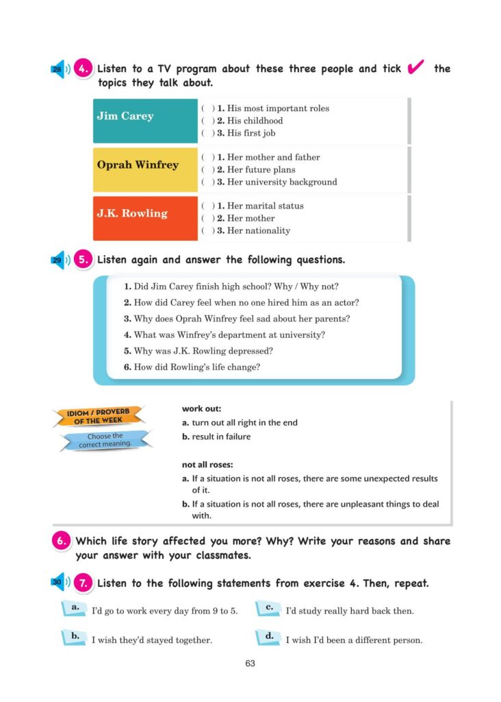 11. Sınıf İngilizce Sunshine Cem Yayınları Sayfa 63 Cevapları / Cevabı
