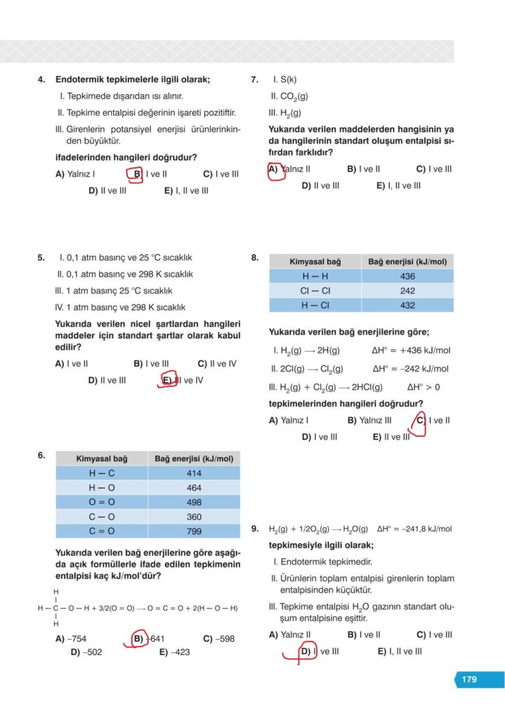 11. Sınıf Kimya Ders Kitabı E-Kare Yayınları Sayfa 179 Cevapları