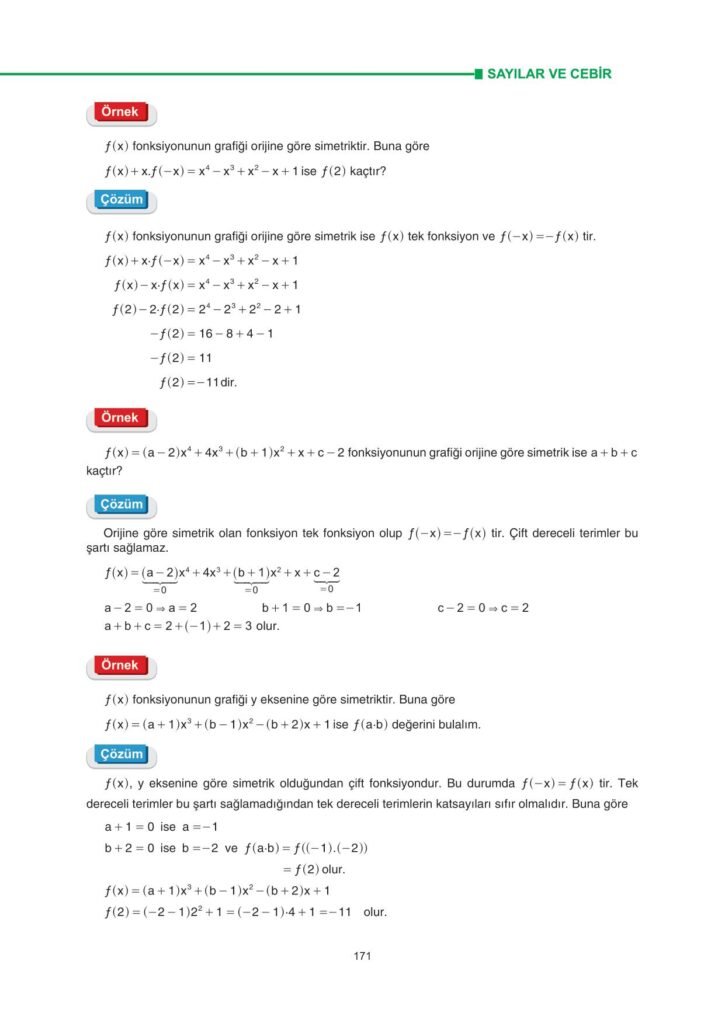 11. Sınıf Matematik Anka Yayınevi Sayfa 171 Cevapları / Cevabı
