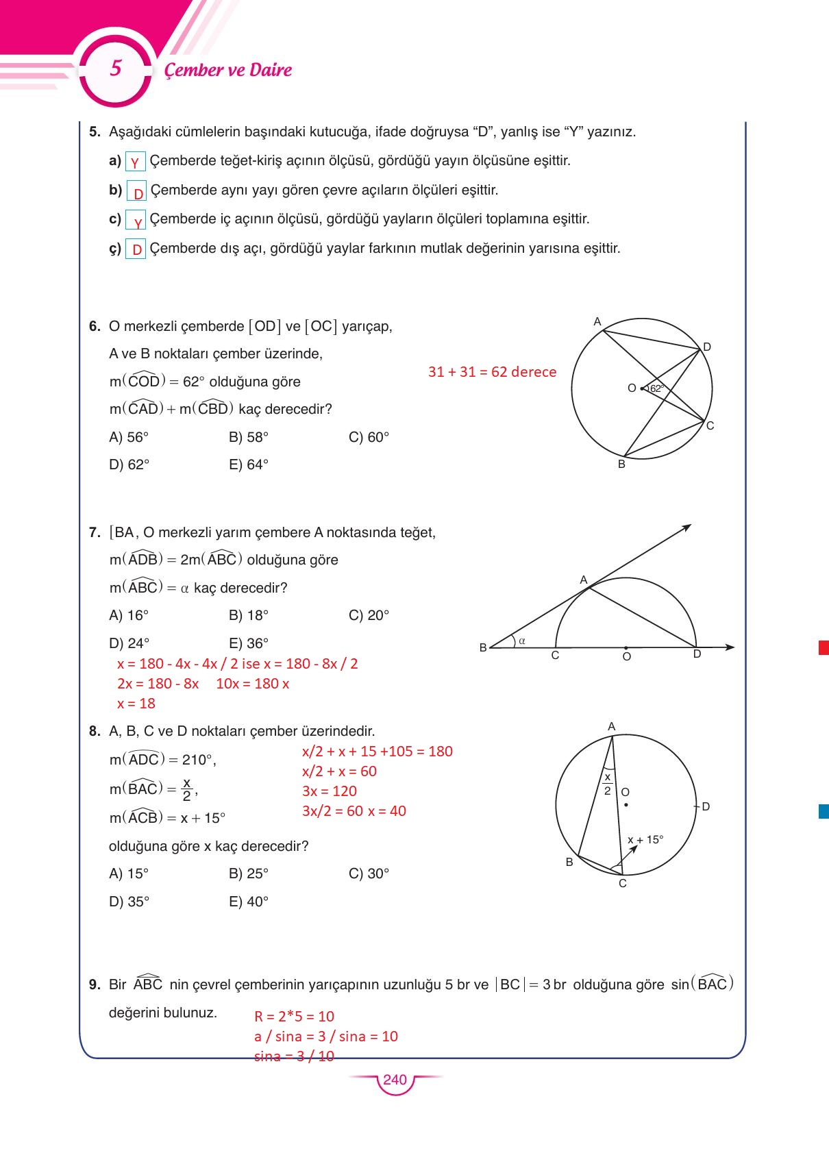 11. Sınıf Sdr Dikey Yayıncılık Matematik Ders Kitabı Sayfa 240 Cevapları