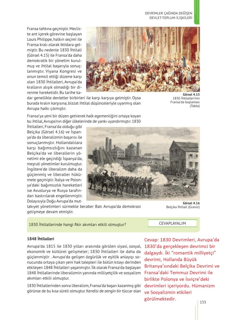 11. Sınıf Tarih Meb Yayınları Sayfa 133 Cevapları / Cevabı