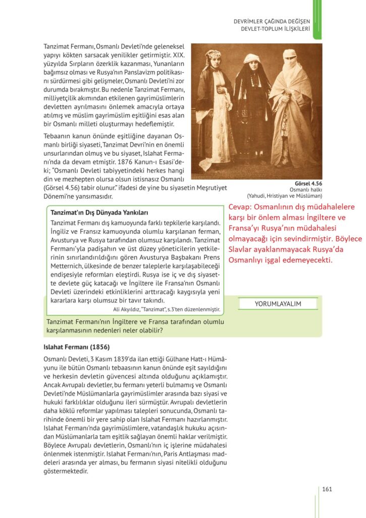 11. Sınıf Tarih Meb Yayınları Sayfa 161 Cevapları / Cevabı