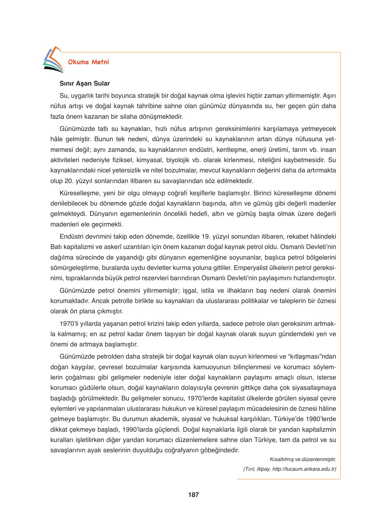 12. Sınıf Coğrafya Ders Kitabı Gün Yayınları Sayfa 187 Cevapları