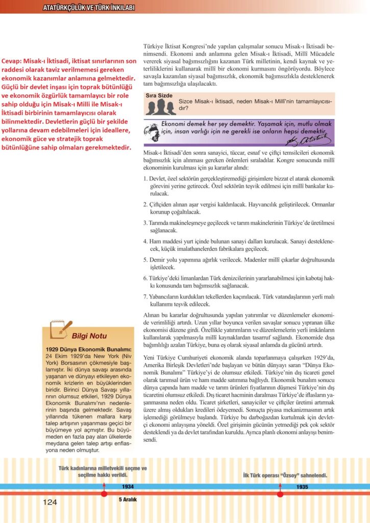 12. Sınıf İnkılap Tarihi Meb Yayınları Sayfa 124 Cevapları / Cevabı