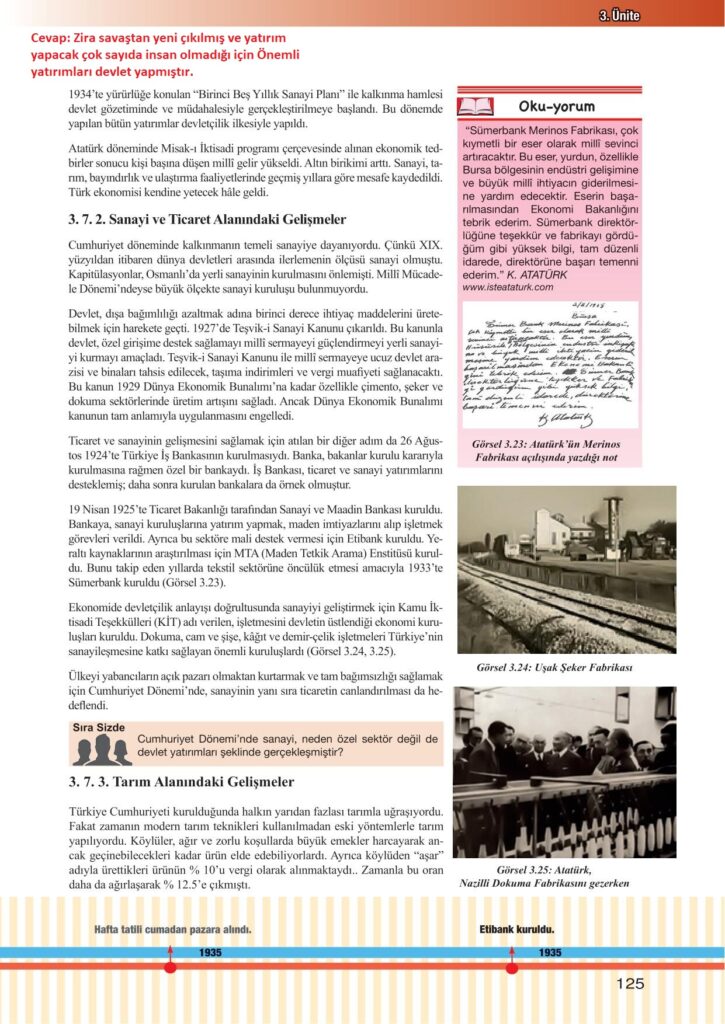 12. Sınıf İnkılap Tarihi Meb Yayınları Sayfa 125 Cevapları / Cevabı