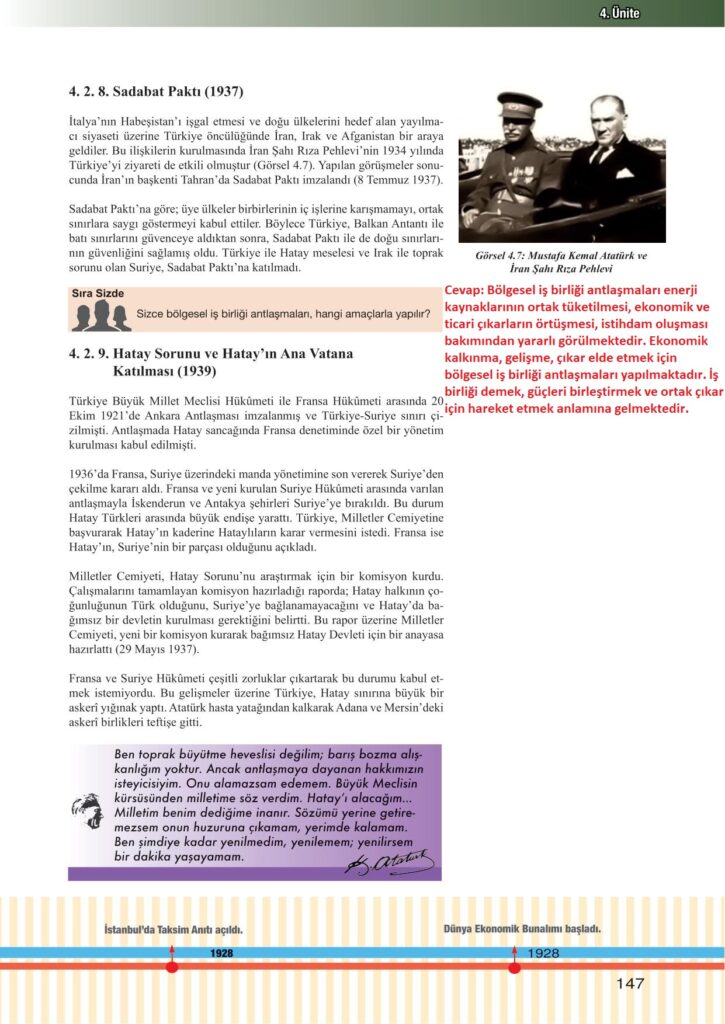 12. Sınıf İnkılap Tarihi Meb Yayınları Sayfa 147 Cevapları / Cevabı