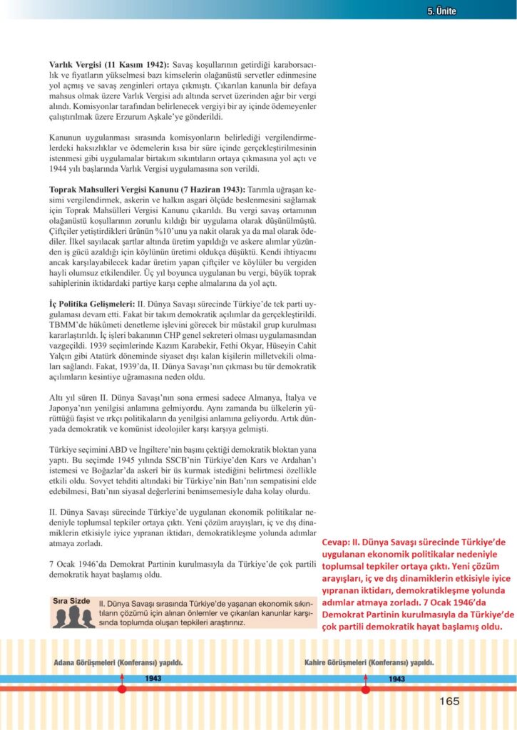 12. Sınıf İnkılap Tarihi Meb Yayınları Sayfa 165 Cevapları / Cevabı
