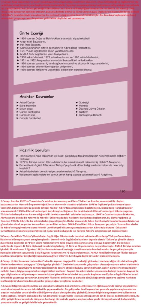 12. Sınıf İnkılap Tarihi Meb Yayınları Sayfa 195 Cevapları / Cevabı