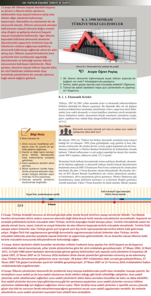 12. Sınıf İnkılap Tarihi Meb Yayınları Sayfa 224 Cevapları / Cevabı