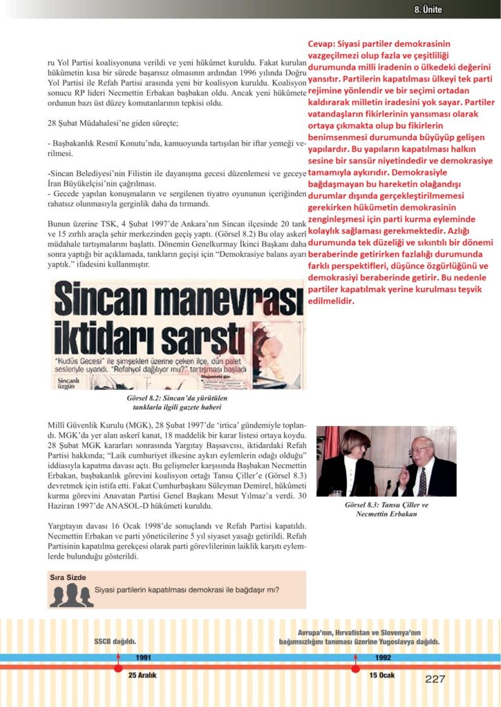 12. Sınıf İnkılap Tarihi Meb Yayınları Sayfa 227 Cevapları / Cevabı