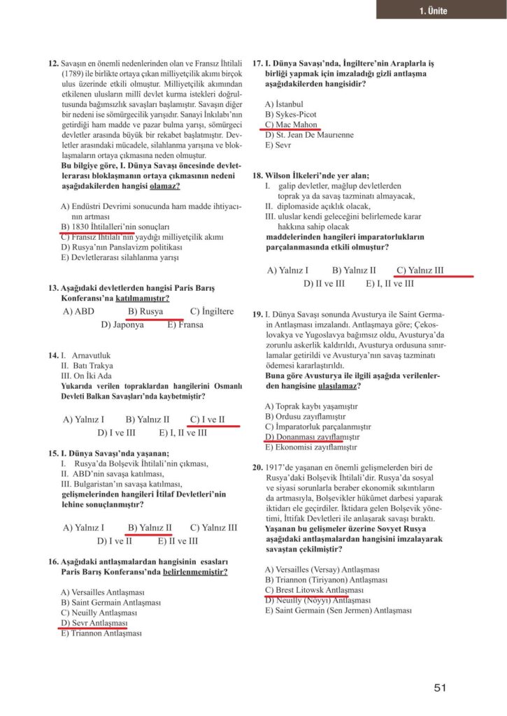 12. Sınıf İnkılap Tarihi Meb Yayınları Sayfa 51 Cevapları / Cevabı