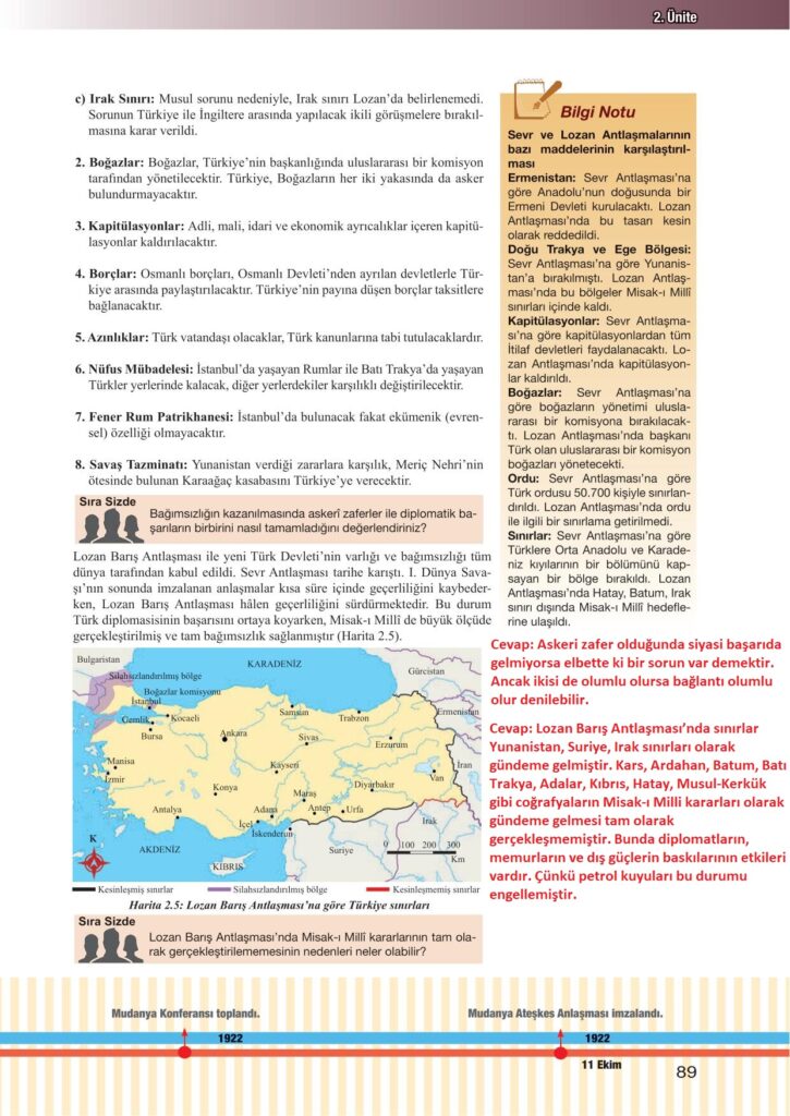 12. Sınıf İnkılap Tarihi Meb Yayınları Sayfa 89 Cevapları / Cevabı