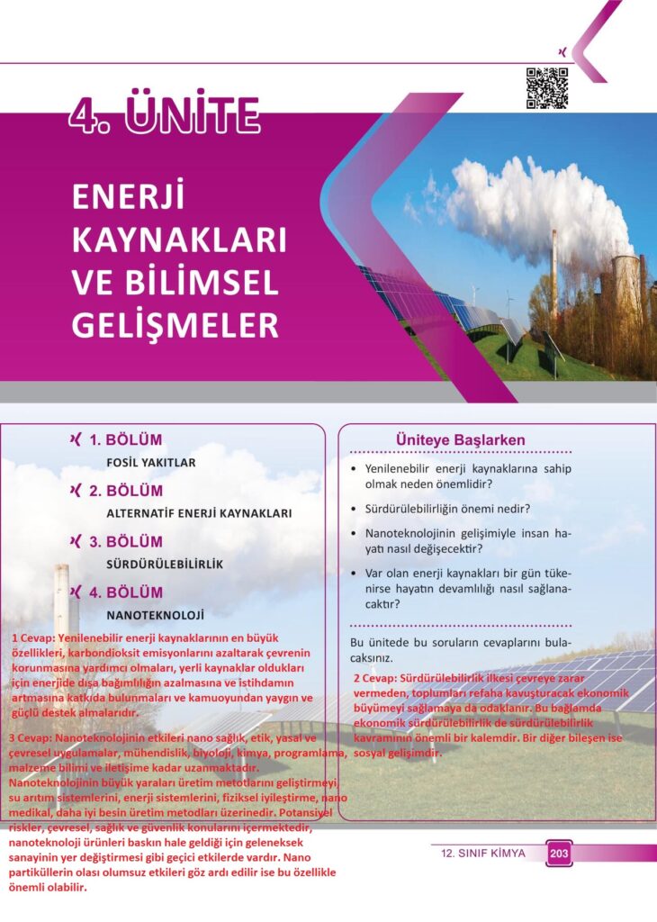 12. SINIF KİMYA MEB YAYINLARI DERS KİTABI CEVAPLARI TÜM SAYFALAR