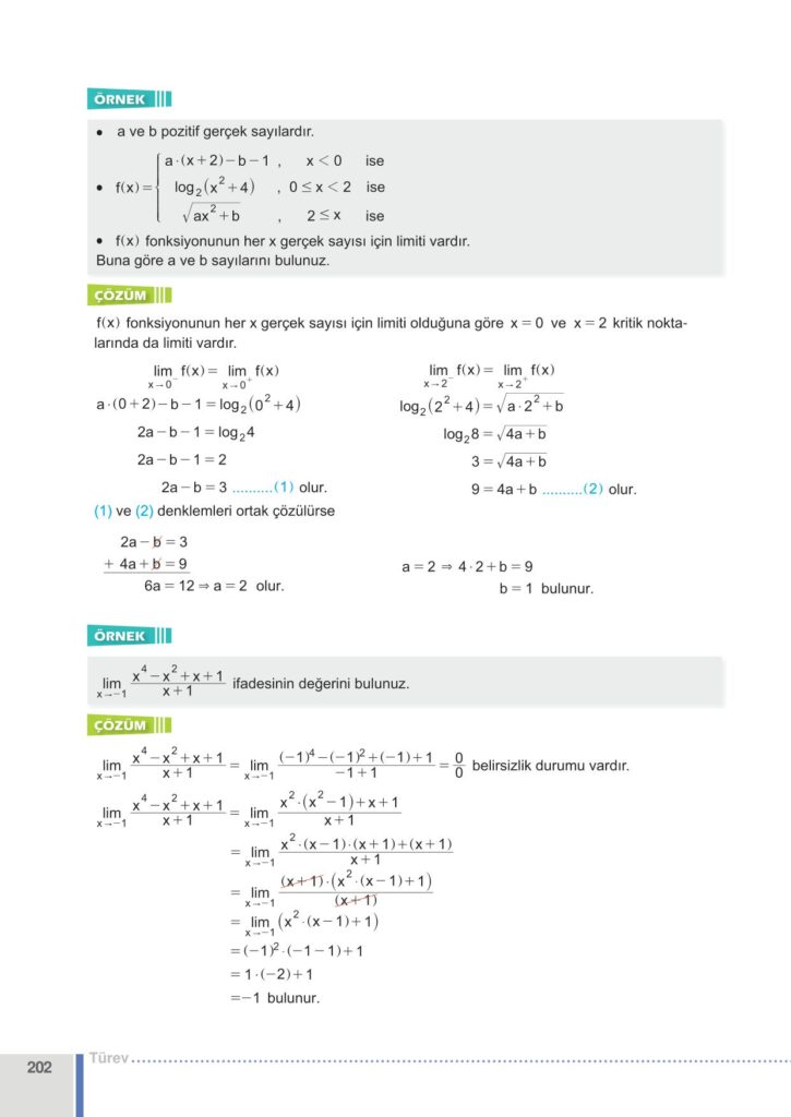 12. Sınıf Matematik Meb Yayınları Sayfa 202 Cevapları / Cevabı