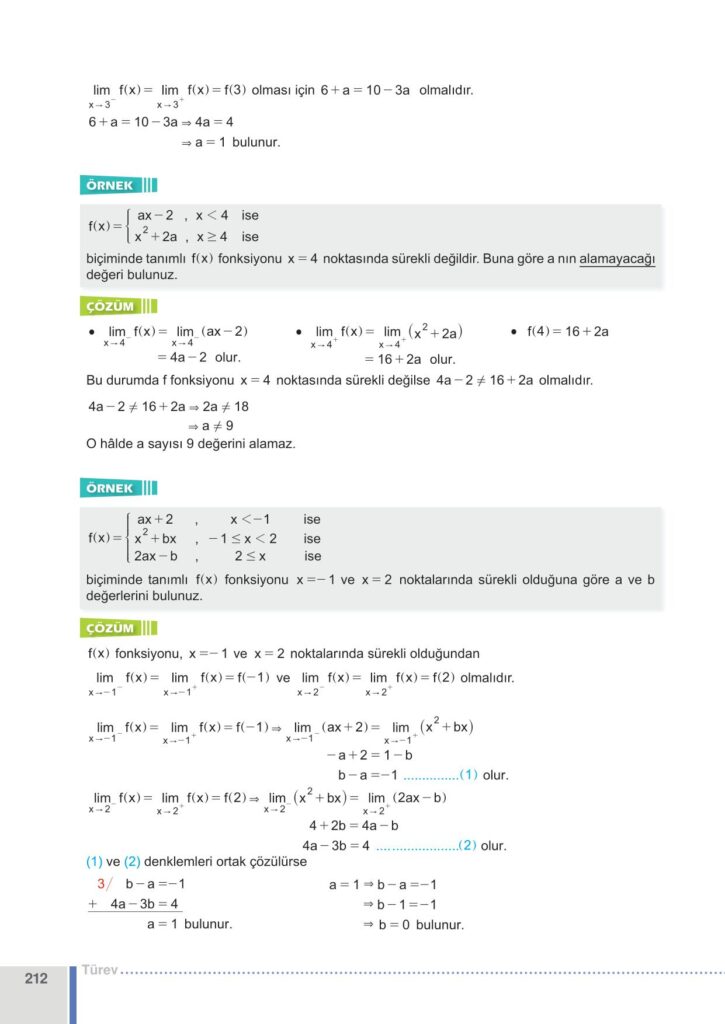 12. Sınıf Matematik Meb Yayınları Sayfa 212 Cevapları / Cevabı