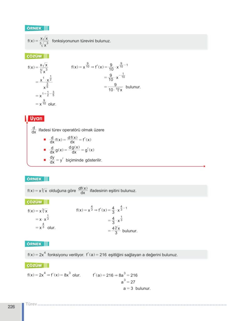 12. Sınıf Matematik Meb Yayınları Sayfa 226 Cevapları / Cevabı