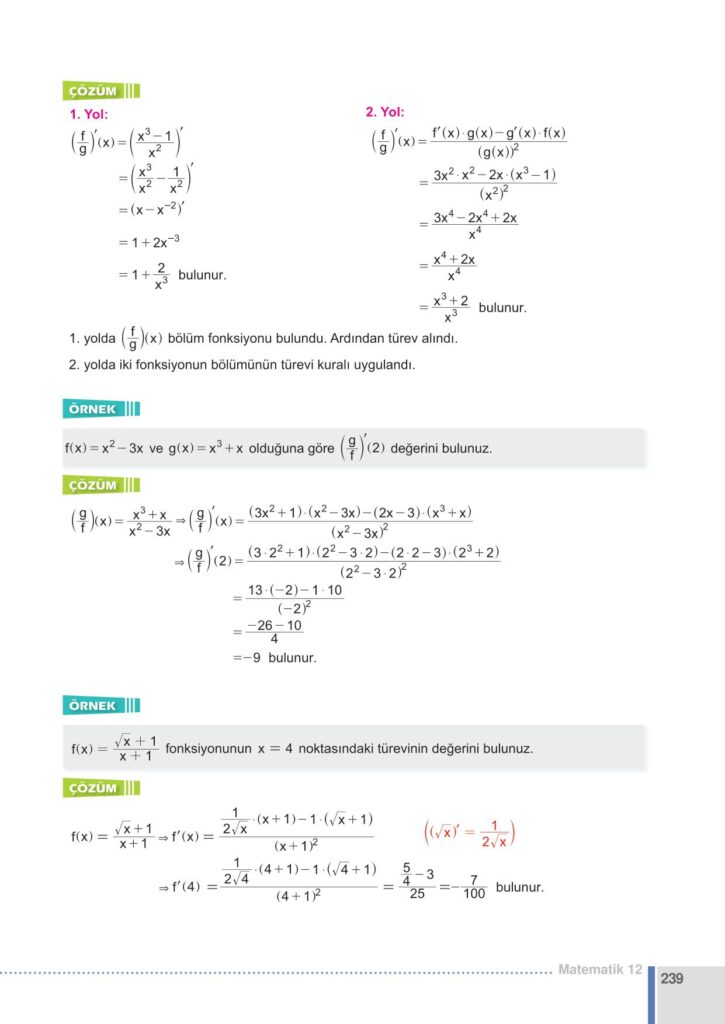 12. Sınıf Matematik Meb Yayınları Sayfa 239 Cevapları / Cevabı