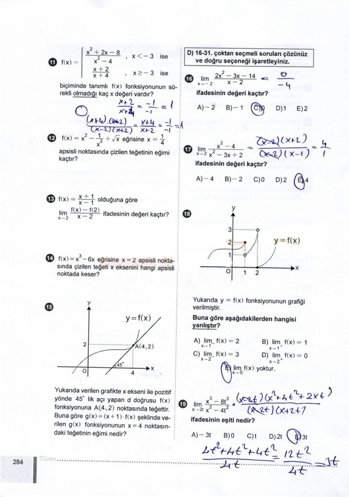 12. SINIF MATEMATİK MEB YAYINLARI DERS KİTABI CEVAPLARI TÜM SAYFALAR