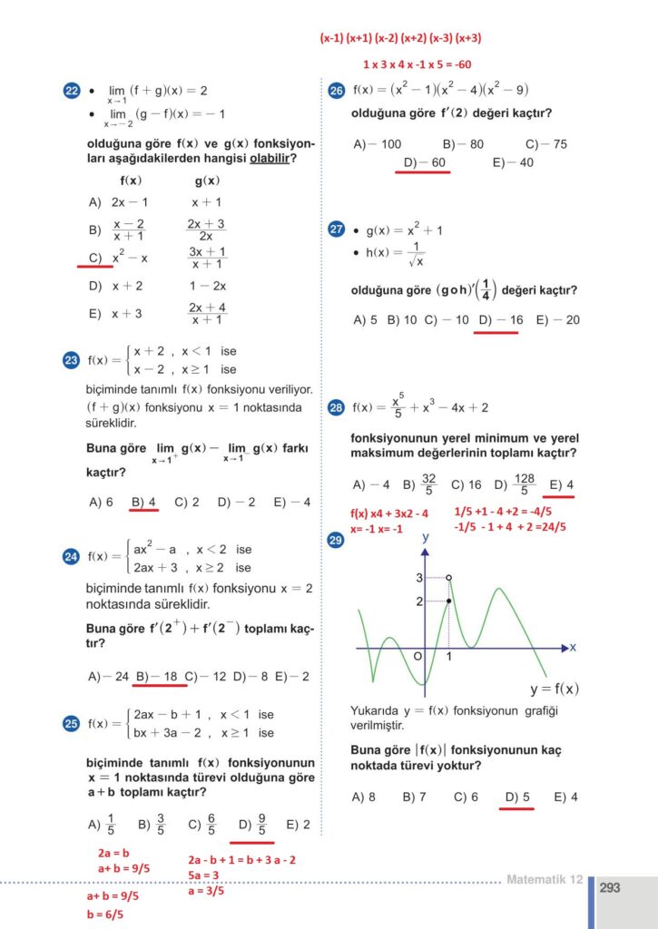 12. Sınıf Matematik Meb Yayınları Sayfa 293 Cevapları / Cevabı