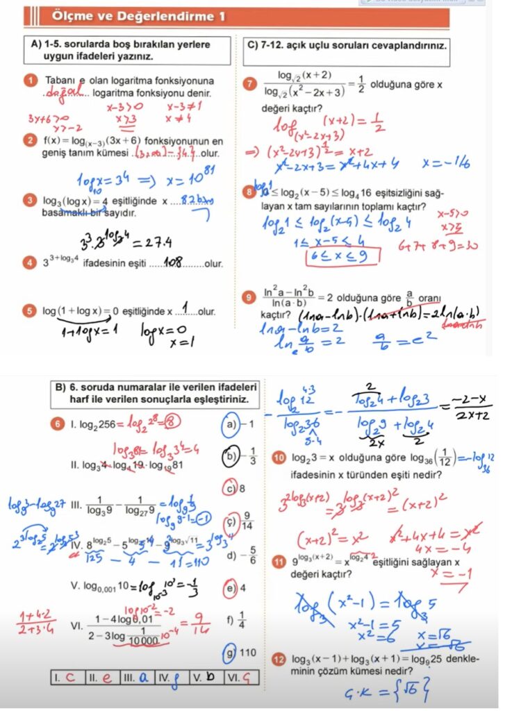 12. SINIF MATEMATİK MEB YAYINLARI DERS KİTABI CEVAPLARI TÜM SAYFALAR