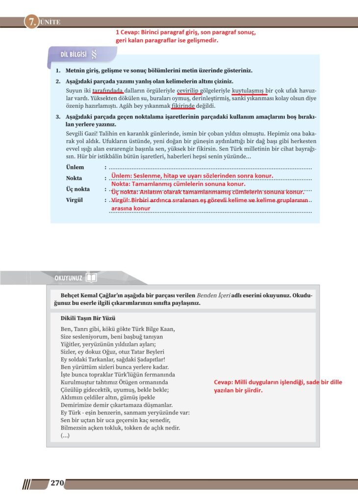 12. Sınıf Türk Dili ve Edebiyatı Meb Yayınları Sayfa 270 Cevapları / Cevabı
