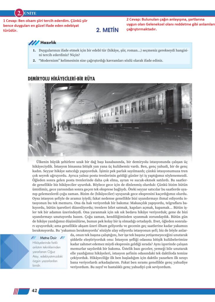 12. Sınıf Türk Dili ve Edebiyatı Meb Yayınları Sayfa 42 Cevapları / Cevabı