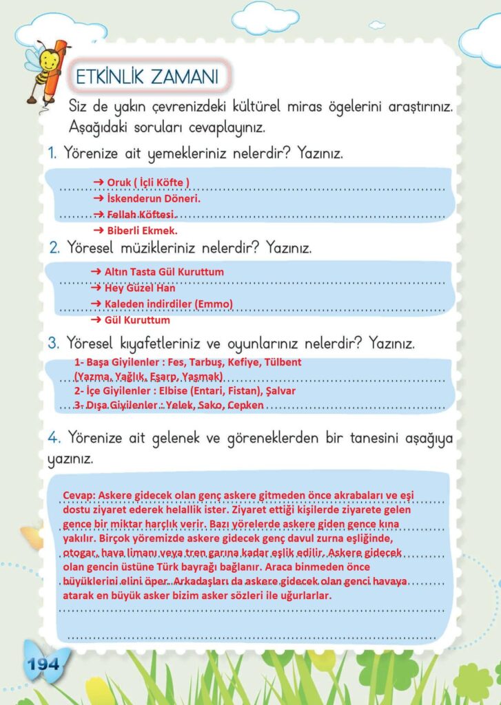 2. Sınıf Hayat Bilgisi Meb Yayınları Sayfa 194 Cevapları / Cevabı