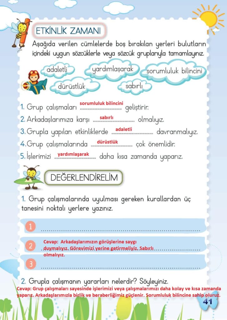 2. Sınıf Hayat Bilgisi Meb Yayınları Sayfa 41 Cevapları / Cevabı