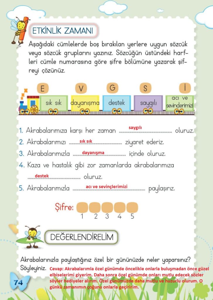 2. Sınıf Hayat Bilgisi Meb Yayınları Sayfa 74 Cevapları / Cevabı