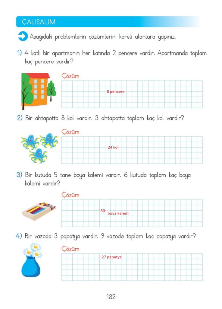 2. Sınıf Matematik Meb Yayınları Sayfa 182 Cevapları / Cevabı