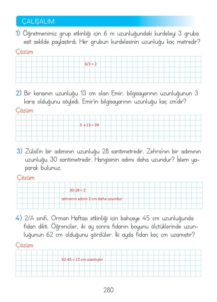 2. Sınıf Matematik Meb Yayınları Sayfa 280 Cevapları / Cevabı