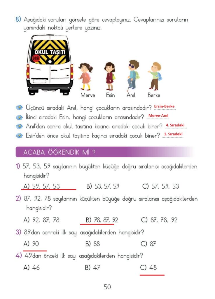 2. Sınıf Matematik Meb Yayınları Sayfa 50 Cevapları / Cevabı
