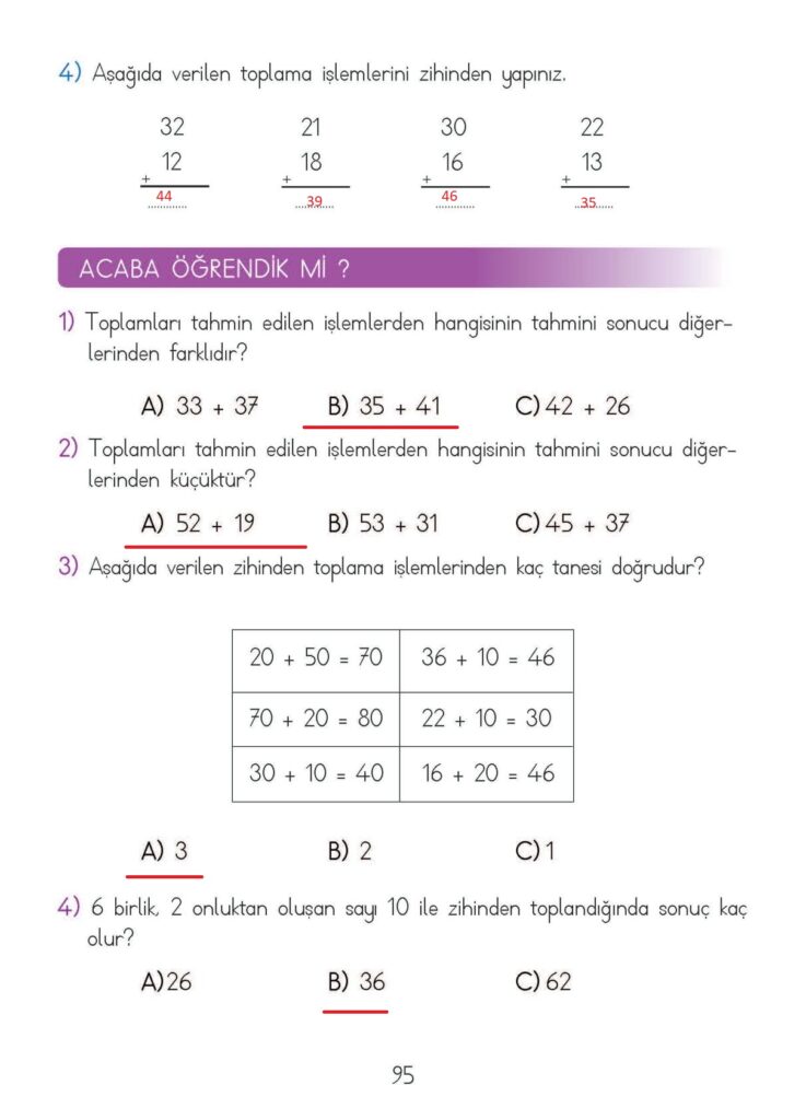 2. Sınıf Matematik Meb Yayınları Sayfa 95 Cevapları / Cevabı