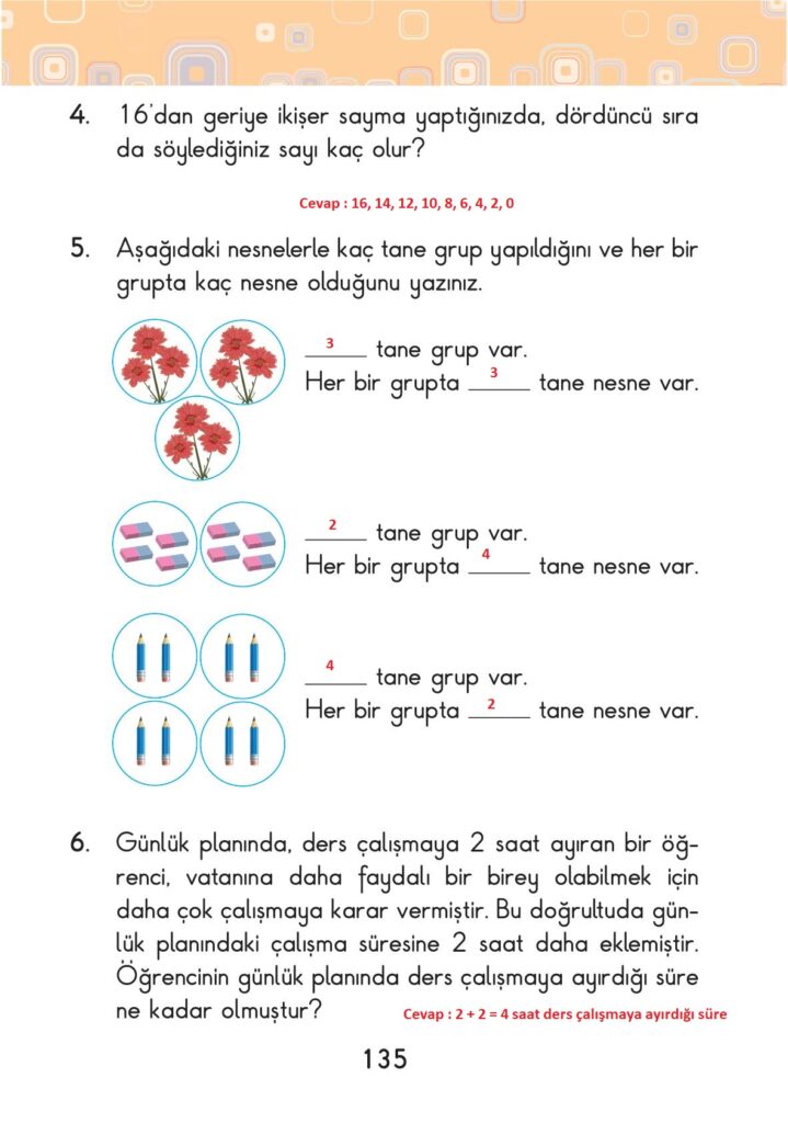 2. sınıf matematik ders kitabı pasifik yayınları sayfa 135 cevap anahtarı 2022-2023 sayfa olarak çözümlerini yanıtları sizler için aşağıda sunduk. 2025-2026 pasifik yayınları matematik ders kitabı cevapları yine sitemizde olacak.