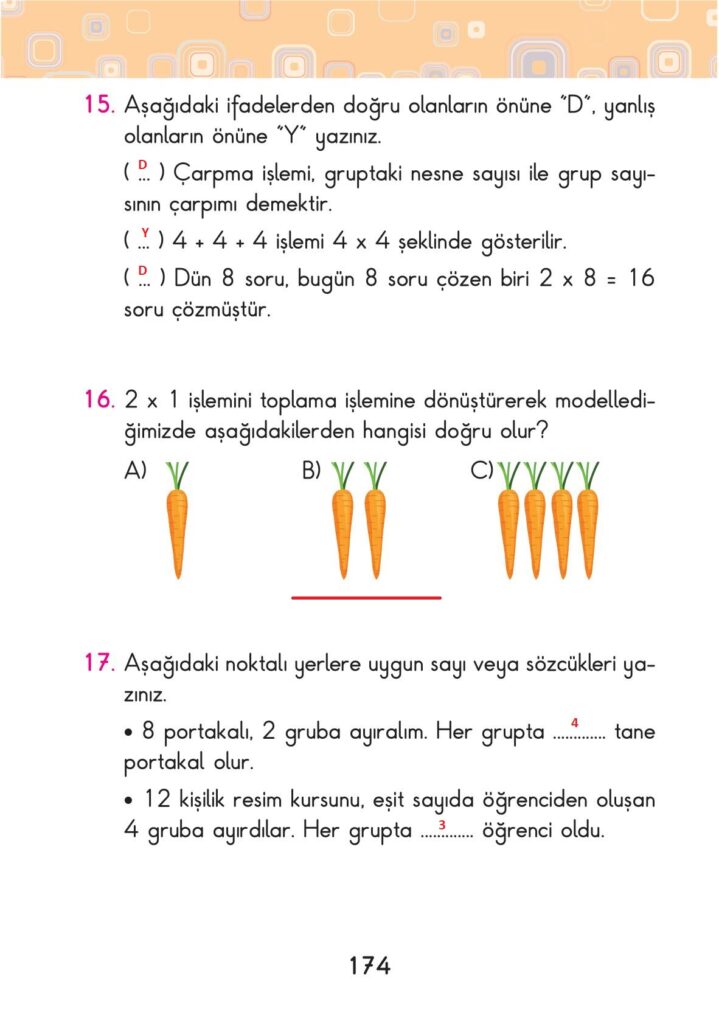 2. Sınıf Matematik Pasifik Yayınları Sayfa 174 Cevapları / Cevabı