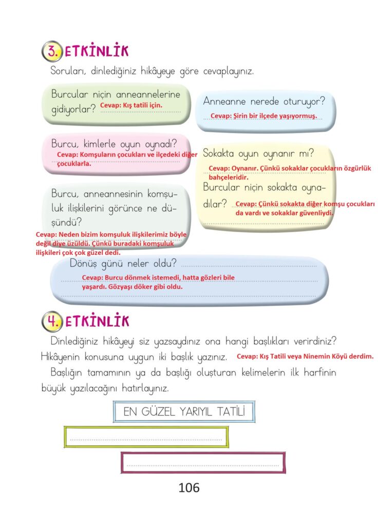 2. Sınıf Türkçe Ada Matbaacılık Yayıncılık Sayfa 106 Cevapları