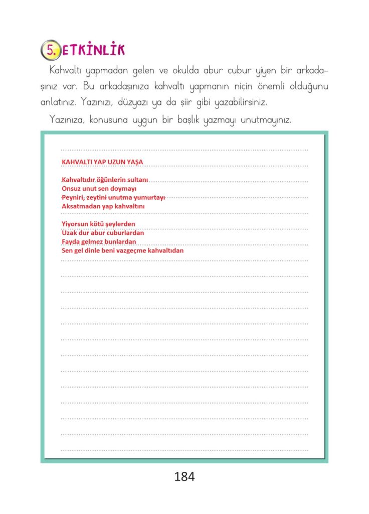 2. sınıf türkçe ders kitabı ada matbaacılık yayıncılık sayfa 184 cevap anahtarı 2022-2023 sayfa olarak çözümlerini yanıtları sizler için aşağıda sunduk. 2025-2026 ada matbaacılık yayıncılık türkçe ders kitabı cevapları yine sitemizde olacak.