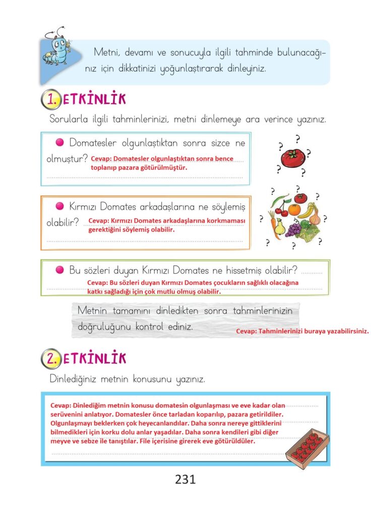 2. Sınıf Türkçe Ada Matbaacılık Yayıncılık Sayfa 231 Cevapları