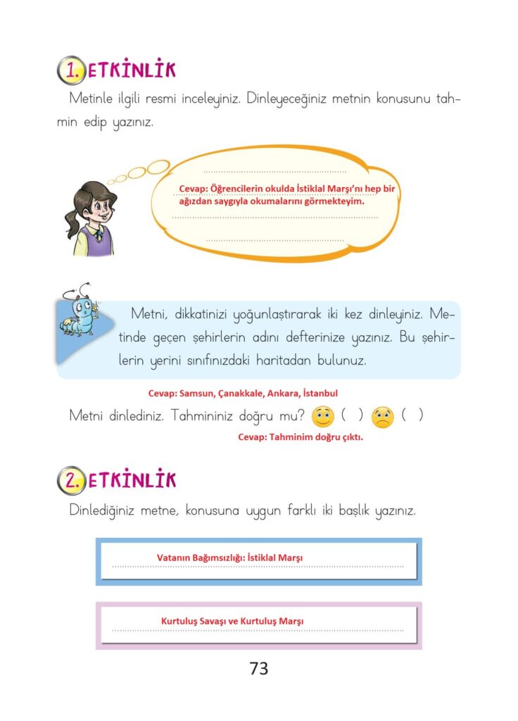 2. sınıf türkçe ders kitabı ada matbaacılık yayıncılık sayfa 73 cevap anahtarı 2022-2023 sayfa olarak çözümlerini yanıtları sizler için aşağıda sunduk. 2025-2026 ada matbaacılık yayıncılık türkçe ders kitabı cevapları yine sitemizde olacak.
