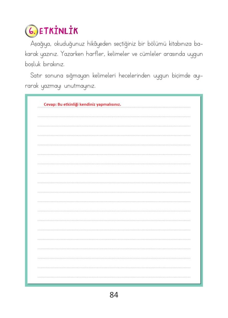 2. Sınıf Türkçe Ada Matbaacılık Yayıncılık Sayfa 84 Cevapları / Cevabı
